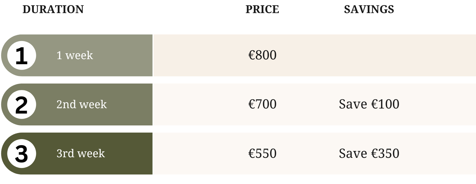 - Daily lunch (three courses)
